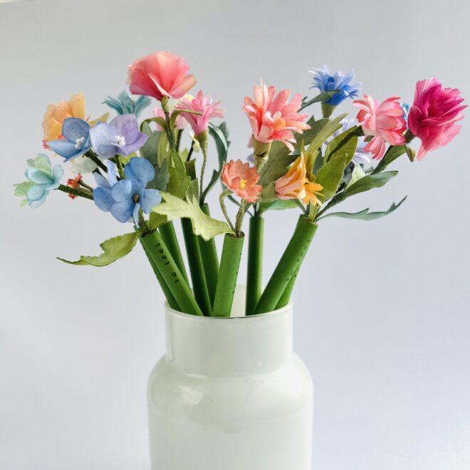 優しい色合いの草花を付けたフラワーペンのご紹介です。