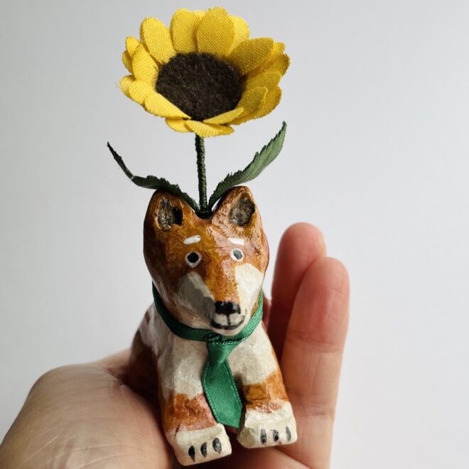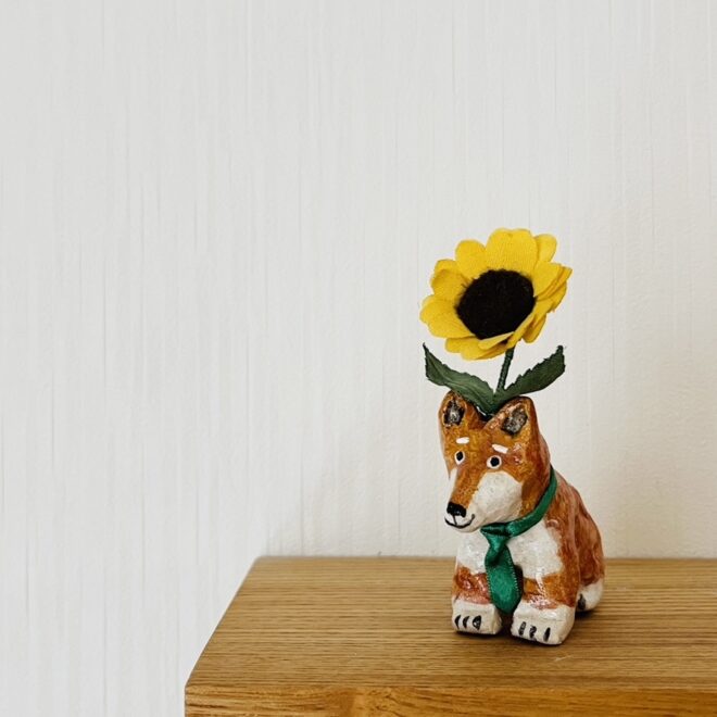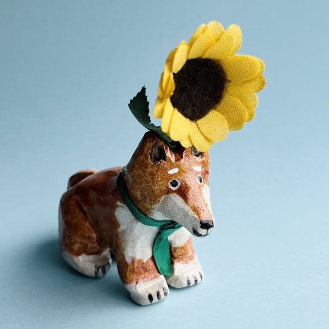 そんなひまわりを、柴犬お父さんにまとわせました。