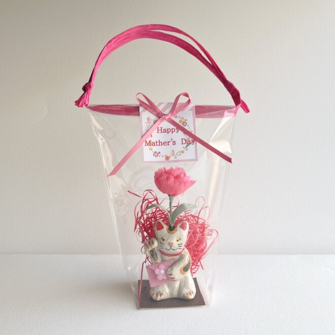 そこで今年はそんな縁起の良い招き猫を母の日バージョンにしてお届けいたします。