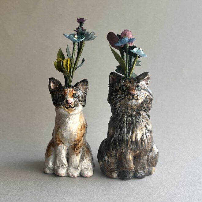 作品は粘土を焼いて作った、手のひらに収まるサイズ感の置物です。