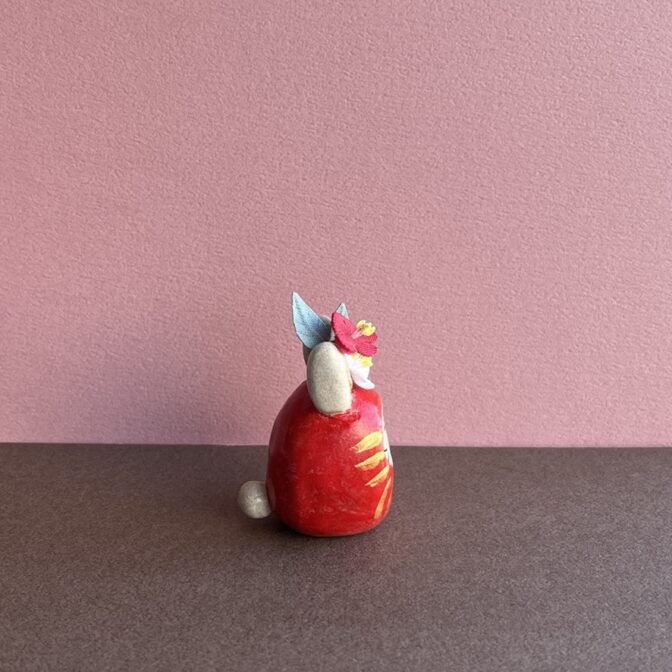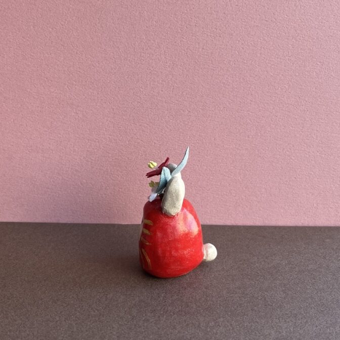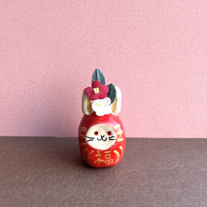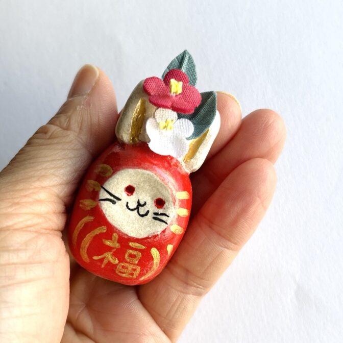 手のひらに収まるサイズのダルマなので、 デスクやテーブルの隅っこ、棚の上、おトイレ、玄関、 どこでも好きなところにちょこんと置けるウサギダルマのオブジェです。