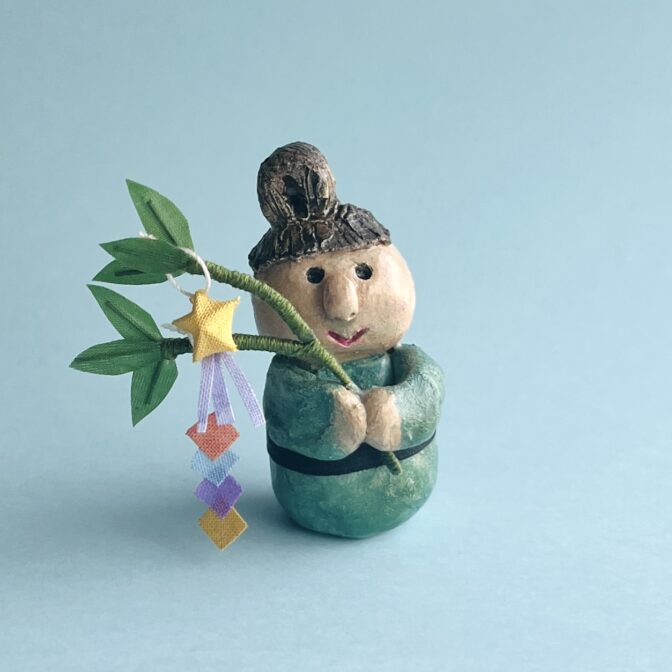 てびねりでの制作、手書き、笹や飾りも全て手染めしている為、 色ムラやにじみ、多少のぐらつきがありますが、手作業の温かみととっていただけると幸いです。